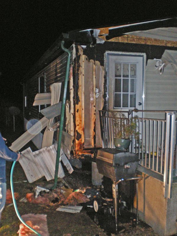 Initial call reported a mobile home fire with the occupants still inside. Follow up calls reported all occupants out of the home and accounted for. Chief 7-5 arrived and reported nothing showing from Side Alpha. Updated report was a small exterior fire on the B/C corner. Fire under control at 18:22.